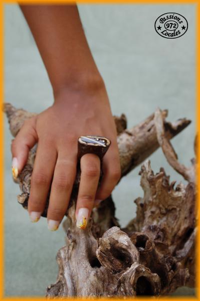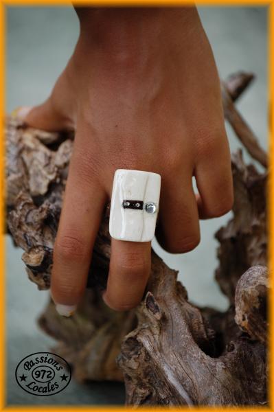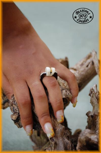 Bague verni en coco , liseret blanc sur le côté et os sur le dessus