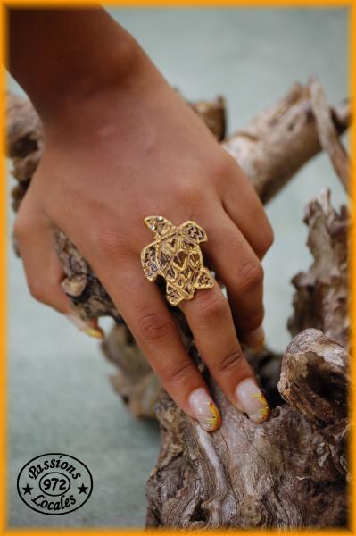 Bague vernie en coco,déco tortue en calebasse, peinture dorée
