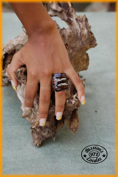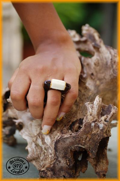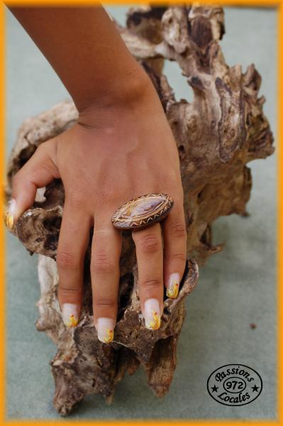 Visualisez quelques créations de bagues en noix de coco vernies, parfois incrustées d'os, de peinture et aussi de calebasse, sans oublié les strass.Les bagues sont toutes uniques, le travail a été réalisé à la main.
